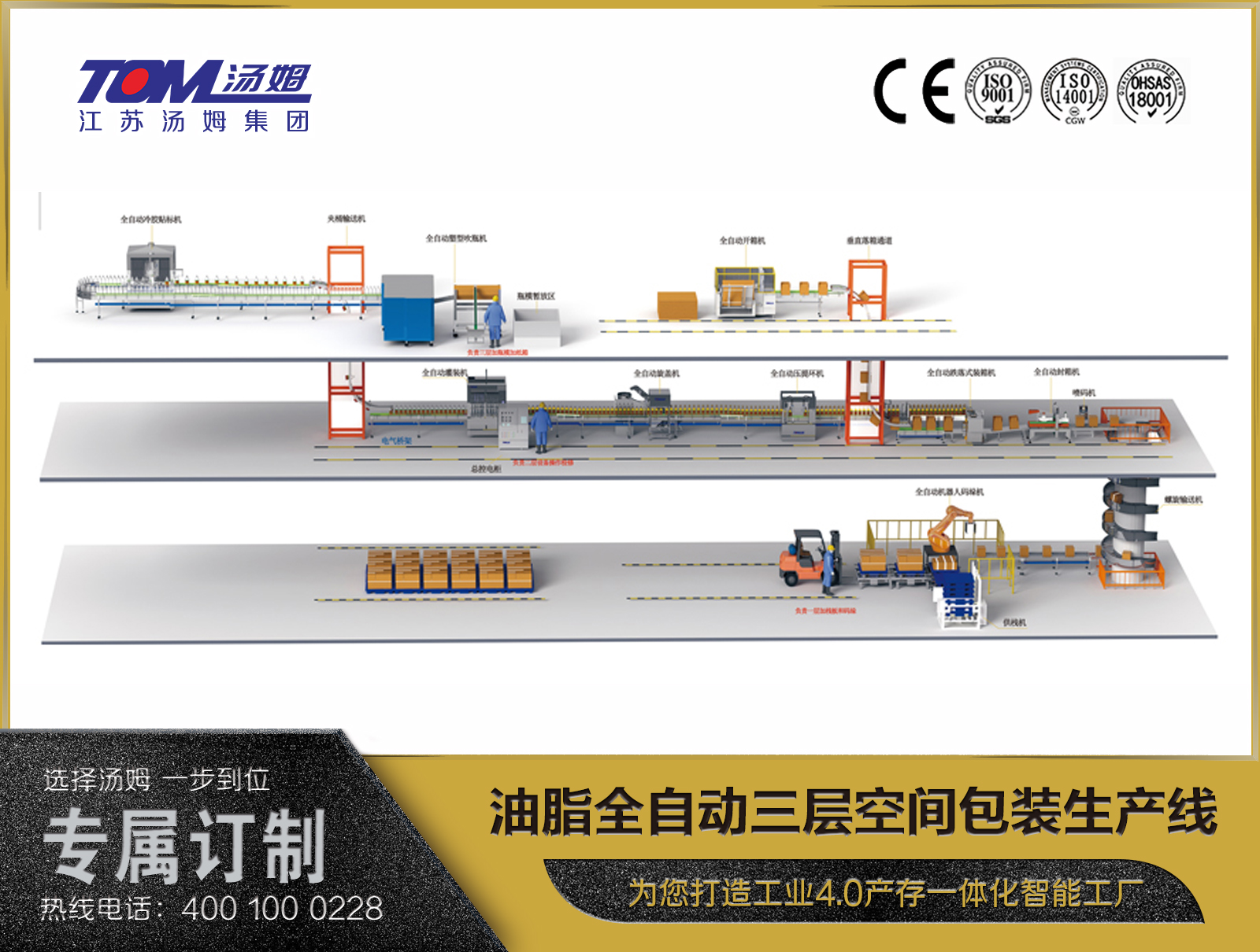 江蘇湯姆森智能裝備有限公司 是江蘇湯姆集團旗下全資子公司,坐落于常州市金壇區儒林鎮99號,是專業生產農化、日化、潤滑油、涂料、化工、調味品、鋰電新材料智能包裝裝備的廠家,工廠占地150畝,建筑面積120558㎡,擁有員工800多人,博士生2名,碩士研究生30名,本科358名,目前已取得ISO9001質量體系認證、ISO14001環境管理體系認證、OHSAS18001職業健康安全體系認證、CE認證。26年來,經過湯姆人的艱苦奮斗,湯姆集團不斷創新發展、與時俱進,為4000多家企業提供了一代又一代先進的智能包裝設備,為客戶打造工業4.0智能化工廠;為客戶提供自動化立體倉庫;為客戶創建智慧工廠生產數據采集執行系統(MES)。 了解更多>>