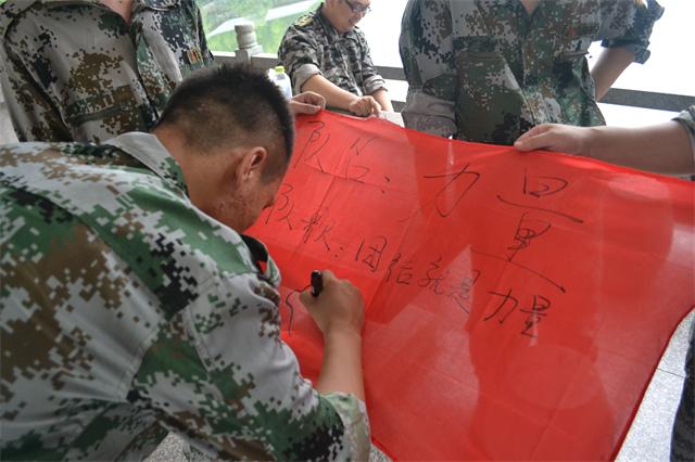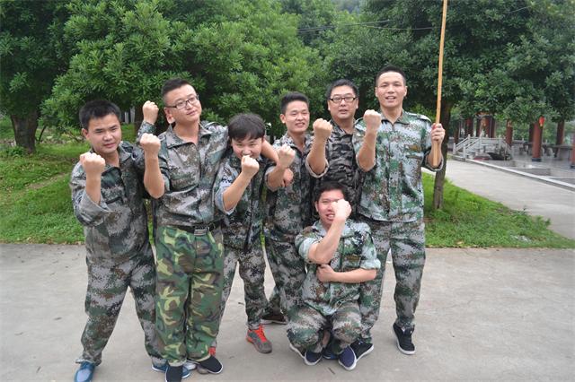 7月16日早上7點,所有人員整裝待發去杭州臨安的訓練基地。上午九點整所有人到達目的地,換上了英姿颯爽的迷彩服排好隊伍。