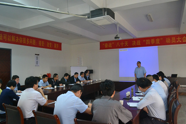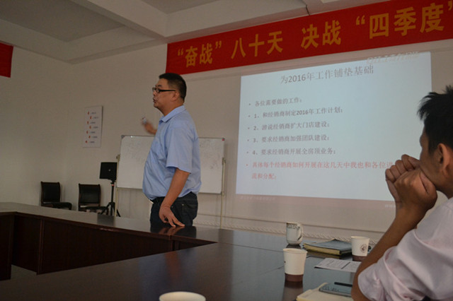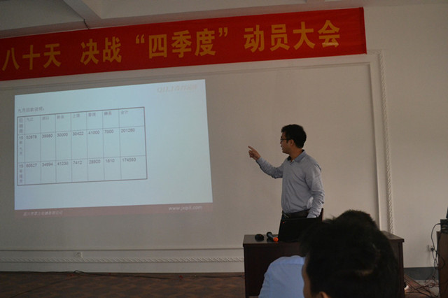10月10日上午,奇力四樓會(huì)議室召開(kāi)了 “奮戰(zhàn)80天,決戰(zhàn)四季度“動(dòng)員大會(huì)。總經(jīng)理穆國(guó)強(qiáng)出席會(huì)議并指導(dǎo)工作,總經(jīng)辦副總經(jīng)理與營(yíng)銷總監(jiān)率營(yíng)銷部下屬銷售部、市場(chǎng)部全體人員及客服部代表參加會(huì)議。本次會(huì)議重點(diǎn)圍繞2015第三季度各項(xiàng)工作情況與問(wèn)題進(jìn)行全面匯總的同時(shí),更對(duì)第四季度工作目標(biāo)做了詳細(xì)的規(guī)劃與布局。