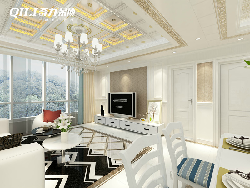 電視墻一般與頂面的局部吊頂相呼應,吊頂上一般都有燈,所以要考慮墻面造型與燈光相呼應,照明燈的顏色和強度也應該留意,不要運用瓦數過大或顏色太耀眼的燈泡,這樣在觀影時才不會有雙眼刺痛或眩暈的感覺。