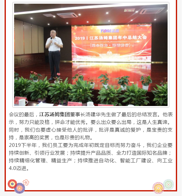 江蘇湯姆集團(tuán)2019年中總結(jié)大會(huì)圓滿落幕|凝心聚力 砥礪前行
