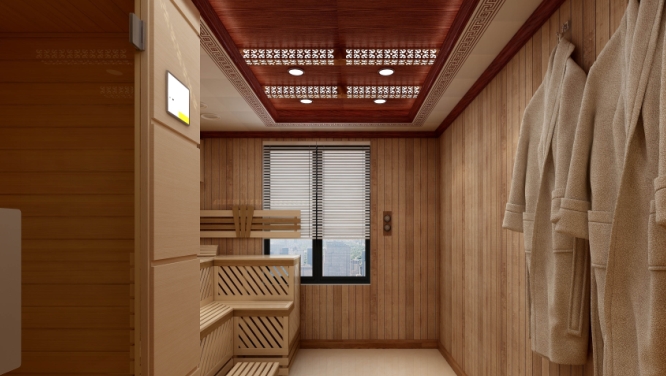 在頂部安裝一款木紋吊頂,有意想不到的質感。現代簡約的衛浴間中加一點木質元素,更顯溫潤。