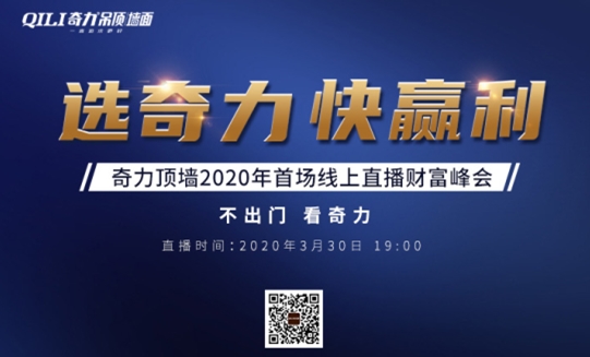 “選奇力 快盈利” 奇力頂墻2020首場(chǎng)線上直播財(cái)富峰會(huì) 2020年3月30日19:30, 不出門,看奇力! 讓我們一起走向財(cái)富巔峰!