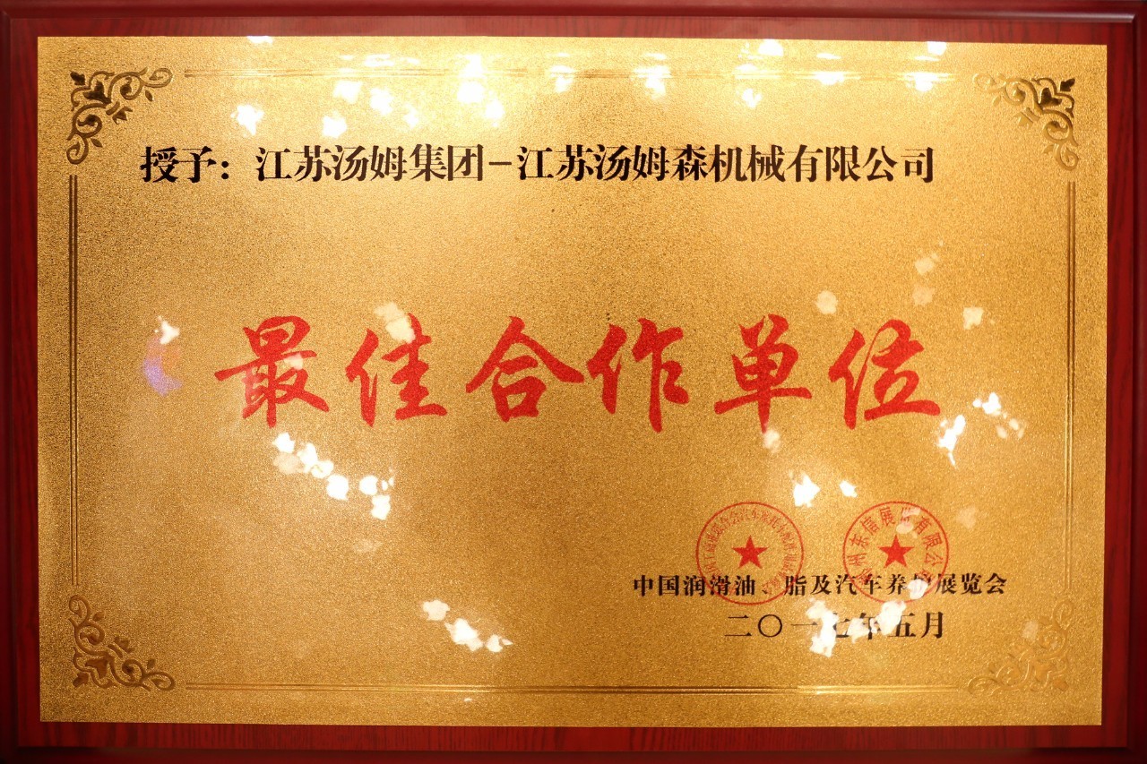 江蘇湯姆集團再獲殊榮·榮獲潤滑油行業“佳合作單位”!