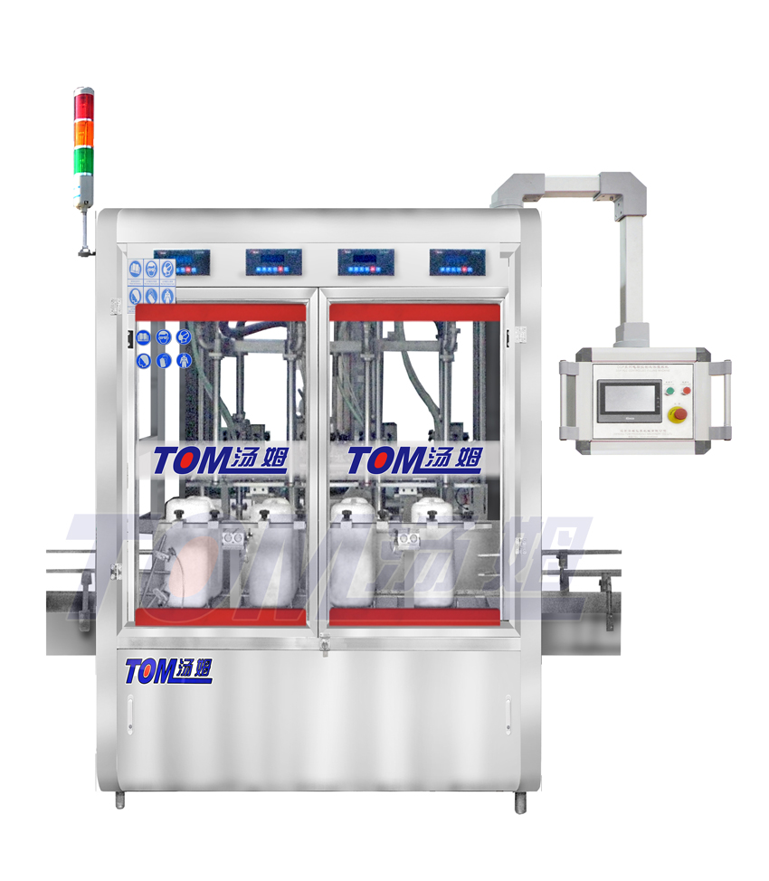 本機適用于對流體1kg-10kg 的計量灌裝機,自動完成計數進瓶,計量灌裝,輸送出瓶等一系列的操作,是油脂、調味品等行業的理想包裝機。