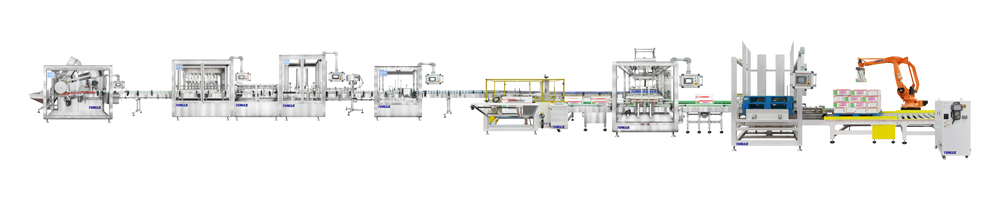 本線亮點(diǎn):1、整線只需一名操作工、一名輔助工和一名叉車司機(jī)即可完成理瓶到碼垛入庫(kù)。
