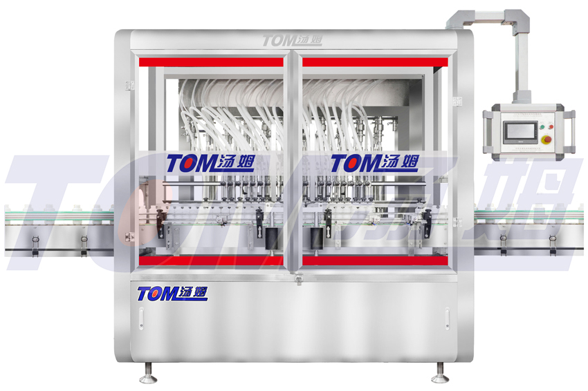 該產品是我公司精心設計的新款灌裝機,產品整體性能達到國際先進水平,部分性能已超過國外同類產品的水平,并得到了油脂巨頭公司的認可。本產品是直線注射式液體灌裝機,采用PLC 和 觸摸屏自動化控制,具有計量準確、結構先進、運行平穩、噪音低、調節范圍大、灌裝速度快等優點。對高粘度的液體、半流體都能適應。在人機界面數字化調節計量,并且可設定100ml或200ml 等所需計量,觸摸屏一觸即達,而且可以單頭微調計量。本機外露部分以及液料接觸部位均采用優質不銹鋼制造,表面進行了拋光處理,外形美觀大方不污染環境,符合GMP標準要求。